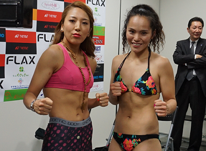 心配された計量も、昇り竜が描かれた水着を着てリミットいっぱいでクリア。話題先行でここまできたモデルボクサーは「殴り合いを見に来てほしい。みっともない試合はしたくない」とリング上でもアピールするつもりだ。一方の王者ベルムデスは、高野のパフォーマンスに関する質問を「あまり見ていなかったど、きれいでしたね」と軽く流しながら「弱い相手はいない」と気持ちを引き締めていた。