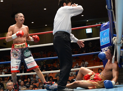 “世界再挑戦前哨戦”と銘打たれた一戦。大竹は初回からジャブで圧力をかけ、右ストレートも決めてタイ人との力の差を見せつけるが、1発当たったところからピッチを上げられない。それでも4回にボディ攻撃から右につないでサンをダウン寸前に追い込み、5回にも右ストレートや右アッパーでダメージを与えると、6回早々に左ボディからの連打でタイ人を沈めた。2度目の世界挑戦を目指す大竹は戦績を24勝11KO2敗3分とした。敗れたサンは9勝3KO10敗2分。