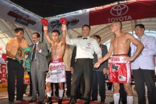 次は黒木と?オーレードン王座統一-WBCミニマム級戦 試合情報(日本語) X Facebook はてブ LINE Pinterest コピー 2009.11.27 27日タイ・パトゥンタニ県ランシット屋外リングで行われたWBC世界ミニマム級タイトルマッチは、王者オーレードン・CPフレッシュマート(新たなリングネーム)がフアン・パラシオス(ニカラグア)に2-0の判定勝ちで挑戦者の持つ暫定王座を吸収し、タイトル統一に成功した。 試合はオーレードンがバックステップとタイミングのいいカウンターでパラシオスの重厚なボディーアタックに対抗。終盤押し込まれたものの、手数とヒットで上回って2-0の判定勝ちをマークした。スコアは116-114、115-114、114-114と競ったものの、終盤を除いてオーレードンのペースだった。正王者昇格に自信のパラシオスだったが、パワーに頼り過ぎ。バッティングで王者が負傷して減点されたのも響いた。 オーレードンを抱えるペッティンディープロモーションは、東洋王者・黒木健孝(ヤマグチ土浦)の挑戦を受けるとアナウンス。王者も「決まれば頑張ります」と初の海外防衛に意欲満々だが、交渉はこれからだ。(レフェリーは日本の福地氏)