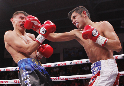 5日(日本時間6日)メキシコ・バハカリフォルニア州テカテで、同国の軽量級トップで元WBO世界ミニマム級王者同士が12回戦で対決。モイセス・フエンテス(メキシコ=WBO・L・フライ級2位)が同級5位フランシスコ“チワス”ロドリゲス(高山勝成に勝って一時IBF王座も保持)に2-1判定勝ちを飾った。試合はWBO・L・フライ級挑戦者決定戦として行われた。 ロドリゲスに右を叩き込むフエンテス