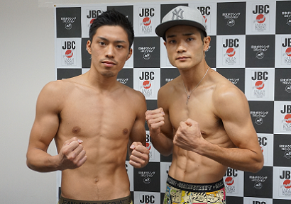 日本S・フェザー級タイトルマッチのセミで行われるOPBF同級タイトルマッチは、チャンピオンの伊藤雅雪(伴流)が58.8キロ、挑戦者1位の江藤伸悟(白井・具志堅S)が58.9キロで13日行われた前日計量に合格した。