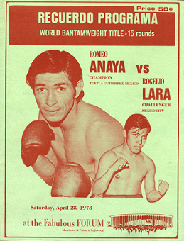 1967年プロデビューしたアナヤ氏は好戦的なファイターとして鳴らし、メキシコの黄金時代を彩る選手の一人だった。73年1月、敵地パナマでエンリケ・ピンター(パナマ)を3回KOで破り、WBAバンタム級王座獲得。自国のライバル、ロヘリオ・ララ、ピンターを下して2度防衛を果たしたが、南アフリカでアーノルド・テーラー(南ア)に14回KO負けで無冠。この試合はアナヤ氏が4度もノックダウンを奪いながら終盤逆転負けを喫したもので、今でもオールドファンの語り草になっている。