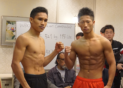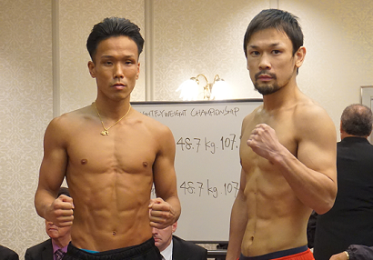 有明コロシアムで行われる「ボクシングフェス2015」はアンダーカードも充実。日本フェザー級タイトルマッチは、5度目の防衛戦となる王者の細野悟(大橋)と元世界王者で挑戦者1位の下田昭文(帝拳)がともにリミットの57.1キロでパス。OPBF・S・フライ級タイトル戦は、王者の井上拓真(大橋)が51.9キロ、挑戦者1位のレネ・ダッケル(フィリピン)が51.7キロで明日の試合に進んだ。