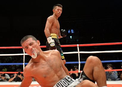 「中盤からペースを上げていこうと話していた」という内山だが、ジャブを突きながら右のダブルを打ち込んでいくと、徐々にペースが上がっていく。それでもまだ肩慣らし段階だった3回、内山がフローレスの左に合わせて強烈なボディアッパーを突き上げると、フローレスがキャンバスにグシャリ。悶絶する挑戦者を見た主審はカウント途中で試合を止めた。