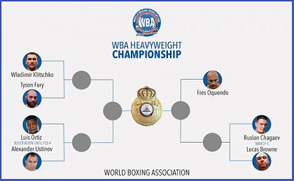 WBAヘビー級は現在、スーパー王者にタイソン・フューリー(英)、正規王者にルスラン・チャガエフ(ウズベキスタン)、暫定王者にルイス・オルティス(キューバ)が君臨。メンドサ会長は「だれもが期待しているように、WBAはチャンピオンを一人にしていく」と決意表明し、具体的なトーナメント案を示した。