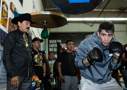 この日サンタクルスは本拠地ロサンゼルスのジム「Who’s Next Boxing Academy」で練習を公開。メキシカン生バンドの5ビートのリズムに乗り、父ホセ・サンタクルスの指導のもとスパーリングを除く一連のメニューを披露。前回のアブネル・マレス(メキシコ=米)戦で獲得した“スペシャルベルト”2つの防衛に意欲を示した。