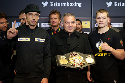 明日20日ドイツのオーバーハウゼンで挙行されるWBA世界S・ミドル級タイトルマッチの計量が19日行われ、王者フェドール・チュディノフ(ロシア)がリミットの168ポンド(76.20キロ)、挑戦者で元世界ミドル王者フェリックス・シュトゥルム(ドイツ)が167ポンド(75.75キロ)を計測して無事パスした。試合はチュディノフが保持するWBAスーパー王座が争われる。