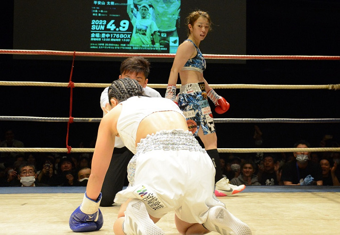4回には沼田のボディーブローが利いて、ナサレノの動きが止まる。「左が効いて(相手が)頭からきた。あそこで対応できなかった僕が悪かった……」と悔やんだ沼田。この直後、福地主審はドクターのチェックをあおいだ上で、沼田の傷が試合続行は無理として、ナサレノのTKO勝ちをコールした。 勝者は19歳の新鋭。11勝7KO2敗。沼田は15勝10KO4敗1分。