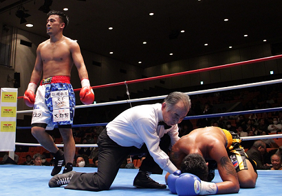 高山は徐々に上にもパンチをヒットさせ、5回には強烈な右を何度もデラ・クルスにヒット。6回もかさにかかって攻める高山は何度も右を打ち込んだが、デラ・クルスは果敢に反撃。しかし、高山の右ボディアッパーが決まるとたまらずうずくまり、10カウントを聞いた。
