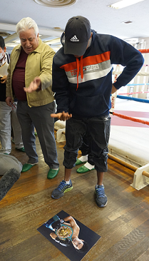 山中の実力を問われると「山中とはまだ試合をしていなので、本当にハードパンチャーなのかは分からない」と疑問を投げかけ、13年の大毅戦にいたっては「私にとって散歩のようなものだった」と小差判定勝ちだったにもかかわらず圧勝を強調。ダウンを喫した河野戦は「河野には一番恐怖を感じた。パワーがあってパンチが強かった」と高く評価したが、会見後は手渡された山中の写真を床に置き、「立ってこい!」と挑発するパフォーマンスも見せた=写真。