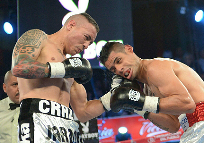 ■日本で三浦隆司(帝拳)と戦ったダンテ“クレージー”ハルドンと、内山高志(ワタナベ)、ホルヘ・リナレス(帝拳)と対戦した元S・フェザー級王者フアン・カルロス・サルガドのメキシカン同士が26日(日本時間27日)メキシコシティで対決。試合は最近の勢いの差が表れ、ハルドンが3-0判定勝ち(118-110、117-112、116-112)。WBCインターナショナル・シルバー・ライト級王座のV3を果たした。WBC同級9位ハルドン(29勝22KO5敗)は5連勝。2度世界王者に就いたサルガド(26勝16KO6敗1分)は逆に5連敗となった。Photo/Pepe Rodriguez