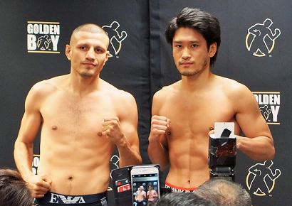 あす15日(日本時間16日)、ロサンゼルスのベラスコ・シアターで挙行されるS・ウェルター級10回戦の前日計量が主催のGBPオフィスにて行われ、亀海喜寛(帝拳)とヘスス・ソト・カラス(メキシコ=米)ともに一発でクリアした。亀海は153.4ポンド(69.58キロ)ソト・カラスは153.6ポンド(69.67キロ)。