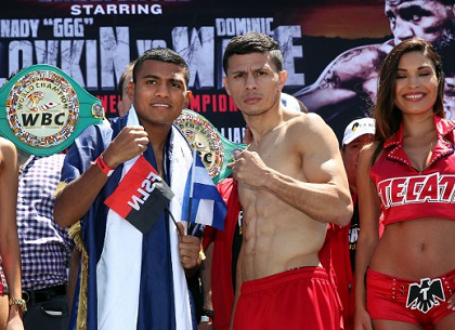 メインで行われるミドル級WBA“スーパー”&IBF統一王者ゲンナジー“GGG”ゴロフキン(カザフスタン)vs挑戦者IBF3位ドミニク・ウェイド(米)は、ゴロフキンが159ポンド(72.12キロ)、ウェイドが159.6ポンド(72.39キロ)でリミット160ポンドをクリア。これまで15連続KO防衛、21連続KO勝ちのゴロフキン(34勝31KO無敗)は、前回のデビッド・レミュー(カナダ)戦で吸収したIBF王座は初防衛戦となる。