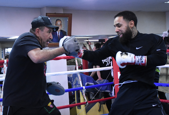 WBA・S・フェザー級は内山高志と同級1位(暫定王者)ジェスレル・コラレス(パナマ)の組み合わせ。恒例のフォトセッションに続き、両者同席の囲み会見となったが、世界戦13度目のチャンピオン内山はさすがに堂々としたもの。「あさっての本番にならないと(コラレスも)殺気を出してこないでしょう」と余裕をみせた。これに対しコラレスは内山を隣りにして「印象? 別に」。パナマを出るのでさえ初めてのはずだが物おじしない性格のようだ。