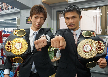 ワタナベジムのWBA世界チャンピオン、S・フライ級の河野公平とL・ライト級の田口良一がともに3度目の防衛を成功させた試合から一夜明けた28日、都内のジムで記者会見を開いた。兄貴分の内山高志がまさかのKO負けを喫しただけに、2王者とも複雑な表情での記者会見となった。