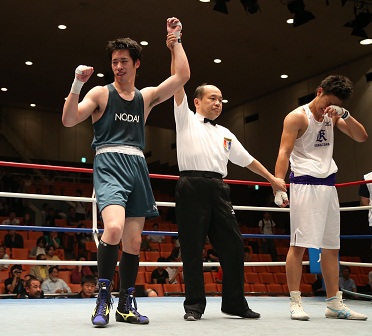 それでも頼みの綱の重量級陣が踏ん張り、L・ウェルター級以上の4階級を連取した。ウェルター級では吉野修一郎が高田侑典に勝ち、これで4-4に戻し、勝負は最後のミドル級に持ち越された。東農大2年生の酒井幹生に対し駒大1年生鬼倉龍大は持ち前の強打で応戦したが、これは酒井が決定打を許さず、白熱の打撃戦を制した。
