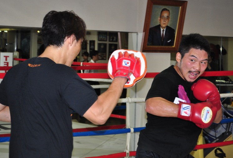 | 初防衛戦が決まり、練習に熱が入る三浦隆司 |