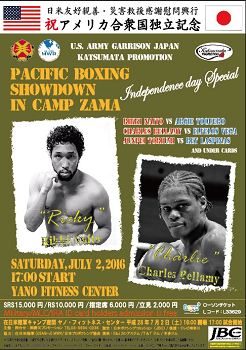 7月2日(土)米陸軍キャンプ座間で開催される「パシフィック・ボクシング・ショーダウン・イン・キャンプ座間・スペシャル」のチケットを5組10名さまにプレゼントします(勝又ジム提供)。試合は17時開始。