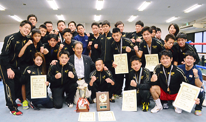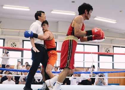 大阪商大の挑戦を受けた4戦全勝の芦屋大の強さが際立った。L・フライの中嶋憂からバンタム中嶋一まで4連勝。ライトの大内は強打の田中に敗れたが、ライト上原から平仲、本間、西村の重量級がそろって勝ち、文句なしの連覇を達成した。なかでも平仲は中谷の意地を見せた打ち合いに応じて、強打を発揮。2回にダウンを奪い、立ち上がったところにパンチを決めてTKO勝ちした。