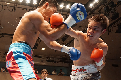 日本S・フライ級1位につけるサウスポーの中川は、小柄なゲーンに圧力をかけ、2回には早くもタイ人にロープを背負わせた。それでもゲーンは勇敢に手を出して右で中川に迫ったが、中川は3回に左を効かせると一気に攻め立てて連打でダウンをゲット。主審が即ストップした。中川は12勝9KO2敗1分。
