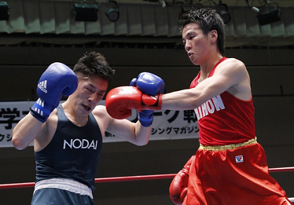 日大はポイントゲッター、L・フライ級の坪井智也、フライ級の村田昴で連勝スタート。東農大はリオ五輪出場を決めた森坂嵐がライト級で勝利するなど粘ったが、日大は実力者たちがしっかりと活躍し、7人目のL・ウェルター級、李健太で5勝目を挙げて勝利を決めた。