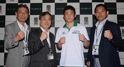 「自分のボクシングをして、金メダルを目指して頑張りたい――」。リオ五輪バンタム級で出場権を得た森坂嵐(東京農業大学2年・20歳)が14日、東京・世田谷の東農大内で高野克己学長らも同席の上メディア向けの記者会見を開き、本番への抱負を語った。