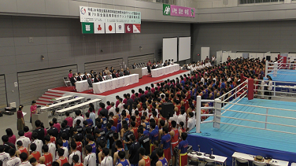 広島市中区スポーツセンターで始まった全国高校総体(インターハイ)は、競技2日目の30日には、A・B両リングで予選計93試合が行われた。この日は緒戦シードの注目選手たちが続々登場。昨年度の優勝者たち――フライ級中垣龍汰朗(宮崎・日章学園=昨年はL・フライ)、バンタム級今永虎雅(奈良・王寺工)、井上彪(宮崎・日章学園=昨年はフライ)、ライト級齋藤麗王(宮崎・日章学園)、L・ウェルター級荒本一成(奈良・王寺工)らが勝利を上げ、連覇を目指して順調に勝ち進んでいる。