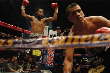 21歳のサウスポー、ネリーがスタートから左を決めて先制。サンチェス(25)も右を巧打して譲らない。2回途中まで渡り合ったサンチェスだが、ボディーに的を絞ったネリーの圧力に押される。3回、ネリーは連打でサンチェスを腰砕けにさせ優勢。4回、左アッパーを痛打したネリーが畳み掛けるとサンチェスはたまらずダウン。気力を振り絞りゴングにこぎ着けた前暫定王者だが、インターバルで棄権した。