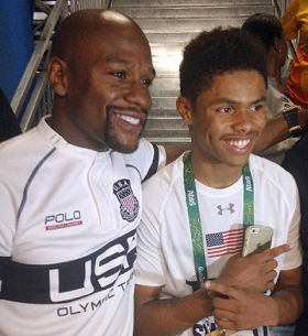 ■リオ五輪を観戦中のフロイド・メイウェザー(写真左)がバンタム級でメダル獲得を確実にした米国代表シャカー・スティーブンソン(19=写真右)を「ネクスト、フロイド・メイウェザーを発見した。もし私のレコードが破られるとしたら、この子だろう。彼に才能を見つけた」と熱烈メッセージを送った。準々決勝でモンゴル代表を3-0判定で下したスティーブンソンは準決勝でウラジミール・ニキティン(ロシア)と対戦する。Photo/BoxingScene.com