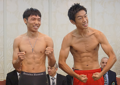 プロデビュー戦に臨むロンドン五輪銅メダリストの清水聡(大橋)は計量後の写真撮影に戸惑い「家でポーズを考えてくればよかった」と苦笑い。それでも即座にマッチョポーズを披露して、大橋会長に「デビュー前だがプロとして大事なものを持っている」と言わしめた。試合は韓国フェザー級王者イ・インギュと58.0キロ契約6回戦。清水はリミット。イは57.8キロだった。