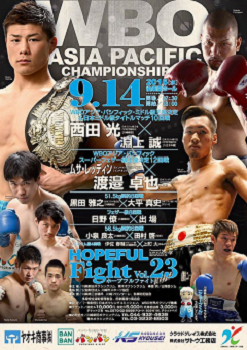 両者は新旧王者であるだけでなく、西田がファイタータイプ、淵上がサウスポーのアウトボクサーとスタイルも対照的。互いの意地をかけた熱いファイトが繰り広げられるでしょう。なおこの試合は、WBOアジアパシフィック王座決定戦も兼ねています。