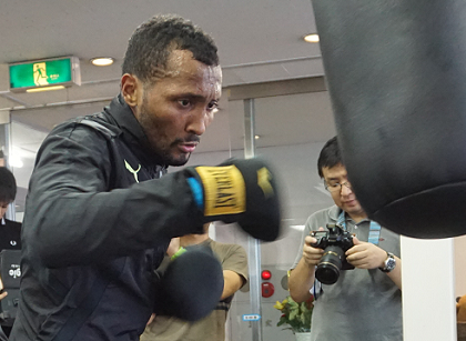 エディオンアリーナ大阪(大阪府立体育会館)第一競技場で16日ゴングとなるWBC世界バンタム級タイトルマッチで王者の山中慎介(帝拳)に挑戦する同級1位アンセルモ・モレノ(パナマ)が12日、都内の帝拳ジムで練習を公開した。