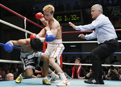 辰吉は2回も距離を取る修平に手を焼いたが、3回終盤、前に出て左右のフックを決め、修平からダウンを奪い返した。辰吉は4回もフラフラの修平を攻め、5回に再び左フック、右フックで修平をロープ際に突き落として試合を終わらせた。