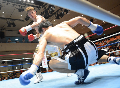 S・バンタム級 松本竜也(角海老宝石)[TKO1回1分43秒]宮地隆佳(石川ジム立川)