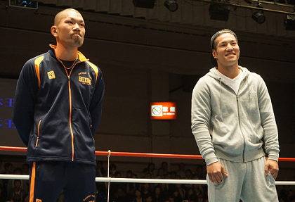 ■王者の西田光(川崎新田)の戦線離脱により開催が決まっていた日本ミドル級暫定王座決定戦の日程が12月24日、後楽園ホールの昼興行(第1試合午前11時開始)で行われることに。同級1位の胡朋宏(横浜光)と2位の淵上誠(八王寺中屋)が11日、後楽園ホールの横浜光ジム興行でフェイスオフ。元日本王者の胡は「早く日本王者に戻りたい。仮免許みたいな試合はすぐに終わらせたい」と淵上を挑発。元日本・OPBF王者の淵上は「勝っても負けてもKO。ミドル級らしい迫力ある試合を見せる」と応じた。