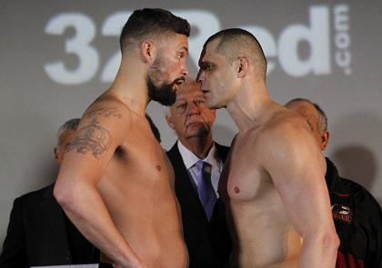 明日15日(日本時間16日)英国リバプールのエコーアリーナで開始ゴングを聞くWBC世界クルーザー級タイトルマッチの計量が14日行われ、王者トニー・ベリュー(英)が199.4ポンド(90.45キロ)、挑戦者BJ・フローレス(米)が199.3ポンド(90.40キロ)をマーク。リミットの200ポンドをクリアした。