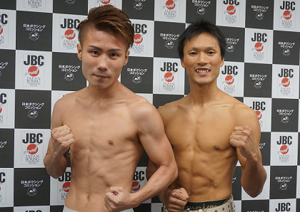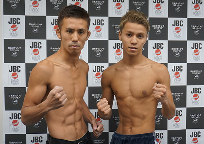 あす25日後楽園ホールでゴングとなる「DANGAN168/Tomorrow’s champions32」の計量が24日、日本ボクシングコミッションで行われた。メインの日本フライ級タイトルマッチは、王者の粉川拓也(宮田)が50.7キロ、挑戦者1位の新井雄大(渡嘉敷)はリミットの50.8キロで明日の試合に進んだ。