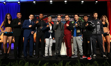 5日(日本時間6日)、米ラスベガスのトーマス&マックセンターでゴングとなるマニーパッキャオ(フィリピン)vsジェシー・バルガス(米)のアンダーカードの記者会見が3日、現地で開かれ、世界4階級制覇王者ノニト・ドネア(フィリピン)、WBO世界フェザー級王者オスカル・バルデス(メキシコ)と挑戦者の大沢宏晋(ロマンサジャパン)らが出席した。