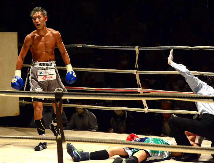 大沢の話「今日、計量が終わって、明日はとうとう本番の試合を迎えるんですけど、自分自身もどうなるか、吉と出るか凶と出るか分からなく、ワクワクしています。日本の皆さん、明日は精いっぱい自分の力を出して答えが決まっていると思うので、応援のほど、よろしくお願いします」Photos:Mikey Williams/Top Rank