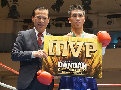 「DANGAN賞金マッチ2016」が8日、後楽園ホールで開催され、C級からA級までのボクサー16人(8試合)が勝敗を争った。MVPにはライト級の横山雄一(帝拳)が選ばれ、賞金50万円を獲得した。横山は昨年11月に敗れて以来、1年ぶりの試合だったが、3度のダウンを奪って快勝した。