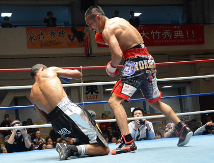 大竹は大苦闘。出だしから打ち終わりにエスピノサの左フック、右をもらう。2回には早くも劣勢となったが、ここで大竹の右打ち下ろしが画に描いたようなカウンターで決まってダウンをマーク。決して動きのいいわけではない大竹はエスピノサの手数に苦しみながら、自らもパンチを繰り出し続けて、最後まで打ち合いに終始した。終盤は大竹が左ボディーも好打して盛り返した。エスピノサは6回にローブローで減点1。大竹は27勝12KO2敗3分。エスピノサは11勝10KO9敗1分。