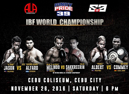 26日フィリピンのセブ島でゴングとなるIBF・L・フライ級暫定王座決定戦の計量が25日行われ、同級3位ファーラン・サックリンJr(タイ)が107.6ポンド(48.80キロ)、同級5位ミラン・メリンド(フィリピン)がリミットの108ポンド(48.98キロ)で合格した。