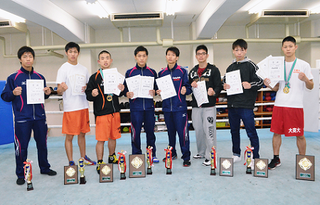 アマチュアの2016年度大阪学生ボクシング最終日は27日、東大阪市の近大オクシング部リングでAクラス6階級、Bクラス3階級の決勝が行われた。Aクラスの最優秀選手賞はバンタム級の西田凌佑(近大2年)、技能賞はL・ウェルター級、丸石迅矢(大商大1年)、敢闘賞はライト級、楠見陽(大商大1年)が獲得、ベストバウトは楠見-石橋翔(近大3年)戦が選ばれた。勝利ポイントで争う団体戦は近大が昨年に続き優勝した。