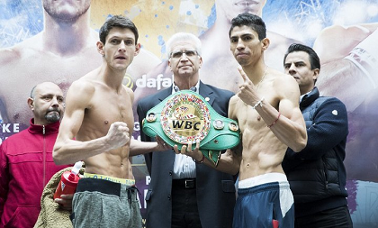同じリングでロンドン五輪金メダルのルーク・キャンベル(英)がWBCライト級シルバー王座の防衛戦。キャンベルは61キロ、挑戦者ハイロ“ドーベルマン”ロペス(メキシコ)は60.35キロ。リミット135ポンド(61.23キロ)をパスした。Photo/BoxingScene.com