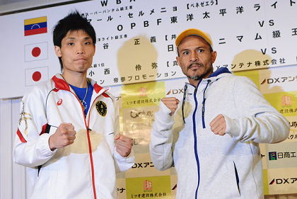 4月9日、大阪市のエディオンアリーナ大阪で開催されるWBA世界S・バンタム級タイトルマッチ12回戦を争う王者、ネオマール・セルメニョ(37=ベネズエラ)と挑戦者8位、久保隼(26=真正)が7日、同市内のホテルで調印式、記者会見を行った。