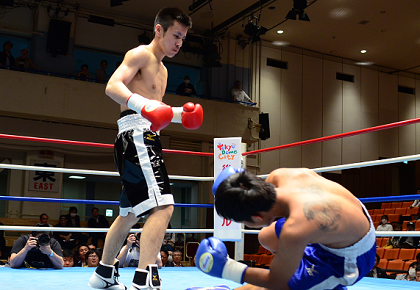 またアンダーカードのS・フライ級6回戦は、元中央大主将で昨年11月にB級デビューした川浦龍生(川島)がゲーン・ミナヨーティン(タイ)を初回3度倒して92秒TKO勝ち。2連勝(2KO)をマークし、A級昇格を決めた。