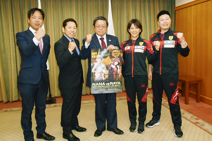 4月29日、大阪府堺市南区のビッグ・アイ国際障害者交流センターイベントホールで初防衛戦を行うWBO女子世界フライ級王者、好川菜々(38=堺東ミツキ)が堺市役所を訪問、竹山修身市長(66)に初防衛を誓った。