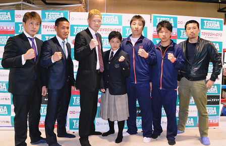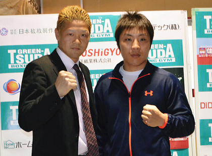 記者会見にはツダの3選手と横浜光の石井一太郎会長、松永、高橋選手も出席、それぞれ決意を表明した。12勝10KO4敗の矢田は「前の試合はタイトル(WBOアジアパシフィック・ウェルター級)獲得に失敗したが、チャンスをもらった。KOしてランキングをいただきます」、11勝5KO1敗の松永は「矢田選手はA級に上がった時から注目していた。パンチ力はあるが、矢田選手に勝って強さを証明、上に進む通過点にしたい」と語った。