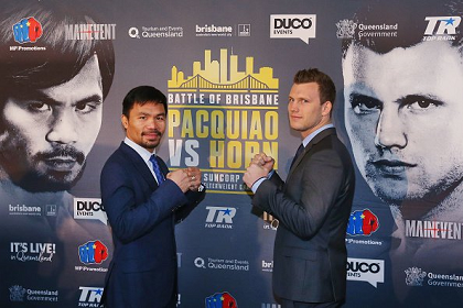 パッキャオは2015年に引退宣言したものの、昨年4月に復帰し11月にジェシー・バルガス(米)を下してWBOウェルター級王座に返り咲き。今回の防衛戦にあたっては挑戦者選びが迷走し、中東開催なども候補に挙がった末に、豪州でのホーン戦に落ち着いた。