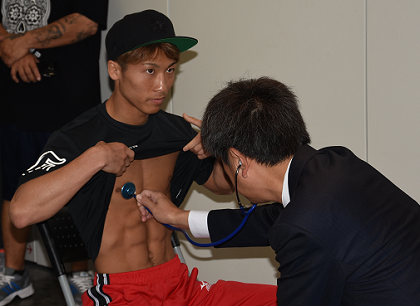 WBO世界S・フライ級王者の井上尚弥と、IBF世界L・フライ級王者の八重樫東が18日、21日に有明コロシアムで行われる防衛戦の予備検診を後楽園ホールで行った。